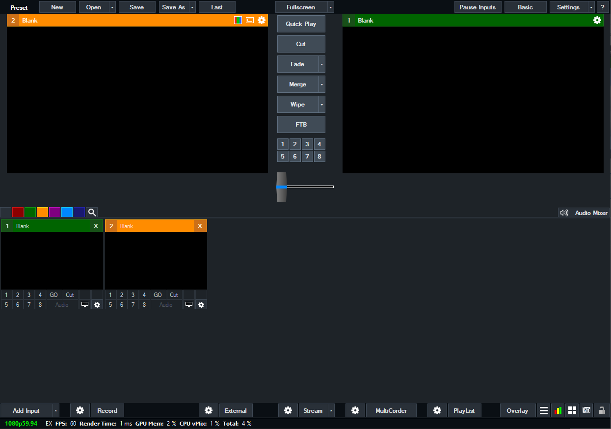 Just like a traditional video mixer, an input you wish to display should be placed in this preview window first.
