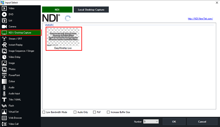 Sending and receiving between vMix and Easyworship using NDI