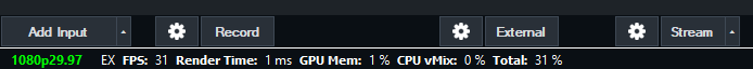 vMix buttons may have numbers 5 and 6 instead of a triangle arrow icon